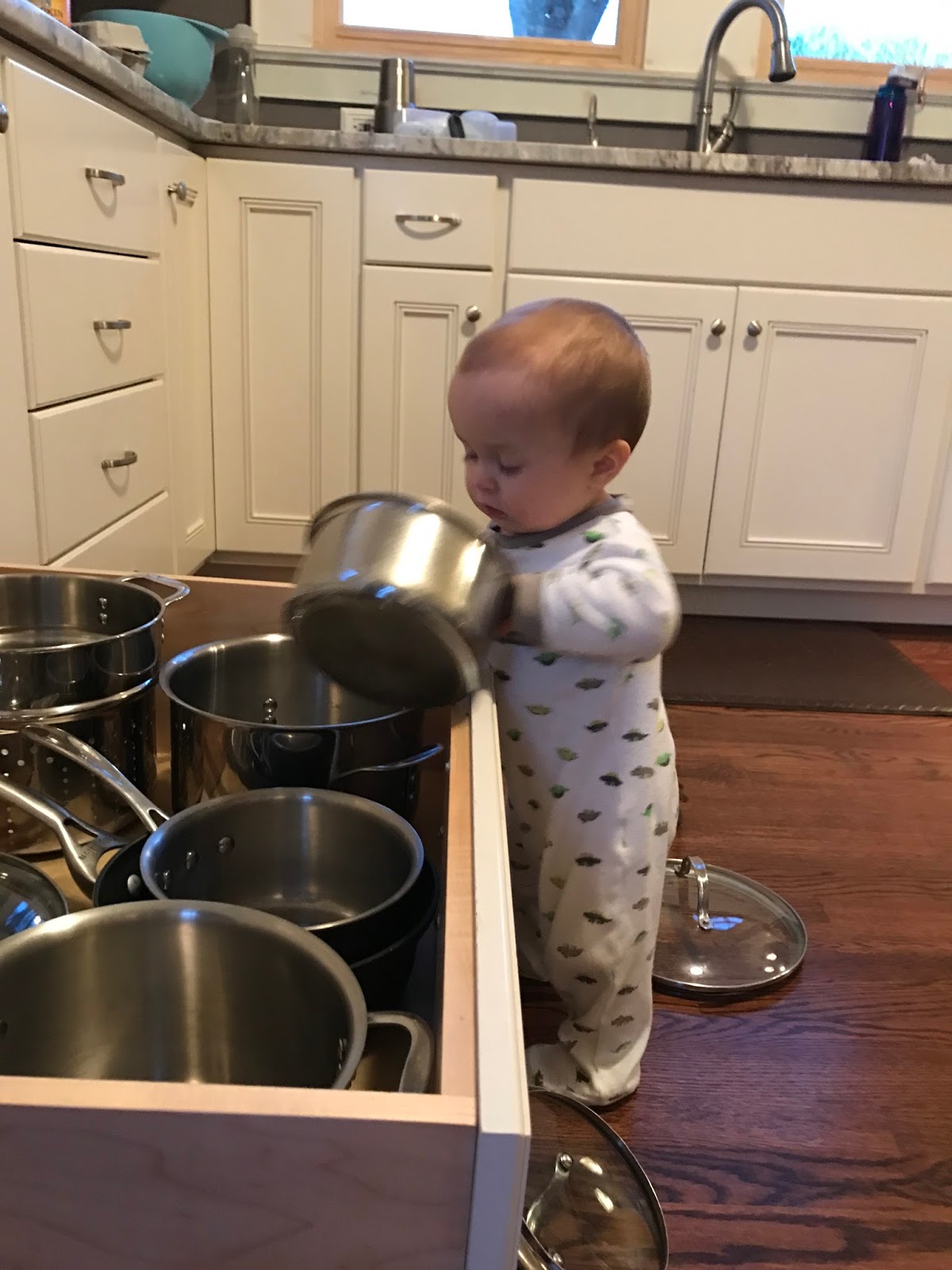 March 26: Getting so big. Pulling up on everything and cruising along furniture.